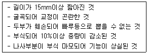 궤도재료점검 중 다음과 같은 불량기준을 갖는 궤도재료는?