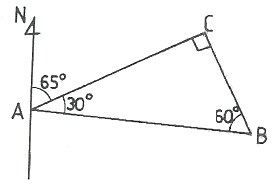 다음 그림은 삼각측량 결과이다. BA측선의 방위각은?
