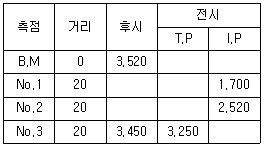 수준측량의 성과 중에서 No.3 측점의 지반고는? (단, B.M. 의 지반고 =50.000m 이고, 단위는 m)