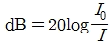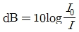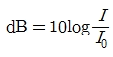 다음 중 음의 세기라벨을 나타내는 dB의 계산식으로 옳은 것은? (단, I0=기준음향의 세기, I=발생음의 세기)