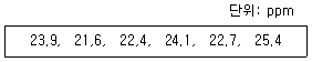 어느 작업장에서 A물질의 농도를 측정 한 결과가 아래와 같을 때, 측정 결과의 중앙값(median; ppm)은?
