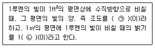 다음은 빛과 밝기의 단위를 설명한 것으로 ㉠, ㉡에 해당하는 용어로 옳은 것은?