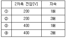 이상적인 단상변압기의 1차측에 60[Hz], 300[V]의 전압을 인가하였을 때에 2차측 전압은 200[V]였다. 1차측 전압이 120[Hz], 600[V]로 변화할 때, 2차측 전압[V]과 이 때의 자속은 몇 배가 되는지 바르게 연결한 것은?
