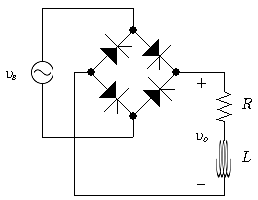 그림과 같은 단상 전파 위상제어 정류회로에서 전원전압 vs의 실횻값은 220[V], 전원 주파수는 60[Hz]이다. 부하단에 연결되어 있는 저항 R은 20[Ω]이고 사이리스터의 지연각(점호각) α=60°라 할 때, 저항 R에 흐르는 전류의 평균값[A]은? (단, 부하에 연결된 인덕턴스 L은 L≫R로 충분히 큰 값을 가진다)