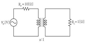 그림과 같은 이상적인 변압기 회로에서 부하저항 RL에 최대전력을 공급하기 위한 a 값은? (단, VP는 전원전압, RP는 전원의 내부저항이다)