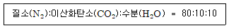 다음은 어떤 화력발전소에서 배출하는 배기가스 성분의 몰 조성[mol%]이다.