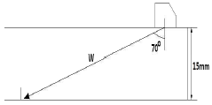 그림에서 굴절각 70° 의 경우 슬릿(slit) 흠까지의 빔노정(W)은 약 몇 mm 인가?