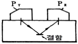 두 개의 탐촉자를 이용한 송·수신(pitch-catch)법으로 결함을 탐지하는 방법 중에서 그림과 같이 탐촉자를 배열하여 검사하는 방법은?