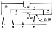 두께 2인치인 알루미늄 시험편을 수침법으로 검사하는 개략적인 그림과 스크린 상에 지시치가 나타난 도형을 이용하여 지시 A와 B사이의 거리를 옳게 나타낸 것은?