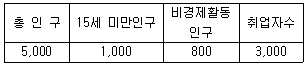 다음 표를 이용하여 실업률을 계산하면 얼마인가?