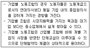 기업별 노동조합에 대한 설명으로 맞는 것은 모두 몇 개?