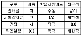 다음 ( )안에 들어갈 직업정보를 전달하는 유형별 장단점으로 옳은 것은?