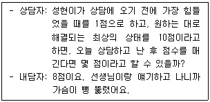 다음 대화에서 상담자가 시도하고 있는 상담기법은?