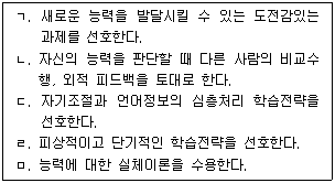 드웩(C. Dweck)의 이론에서 수행목표지향성을 가진 학생들의 특징을 모두 고른 것은?
