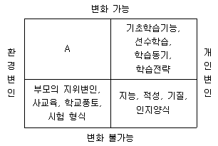 학업 호소 문제와 학습부진의 원인을 통합한 황매향의 분류모형에서 A에 해당하지 않는 것은?