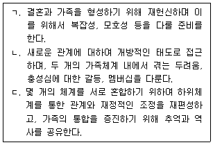 카터(B. Carter)와 맥골드릭(M. McGoldrick)이 제시한 재혼가족 생활주기 상의 발달과제를 순서대로 옳게 나열한 것은?