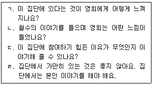 소극적으로 참여하는 집단원(영희)을 위한 집단상담자 반응으로 옳은 것을 모두 고른 것은?