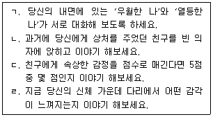 게슈탈트 이론을 적용한 집단상담자의 개입으로 옳은 것을 모두 고른 것은?