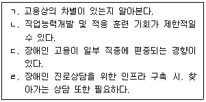 장애인 진로상담에서 고려할 내용을 모두 고른 것은?