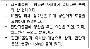 청소년의 집단따돌림에 관한 설명으로 옳은 것을 모두 고른 것은?