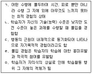 칙센트미하이(M. Cskiszentmihalyi)의 몰입(Flow)에 관한 설명으로 옳은 것을 모두 고른 것은?