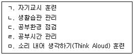 주의집중 향상전략 중 내재적 언어를 통한 자기통제력 향상 방법에 속하는 것을 모두 고른 것은?