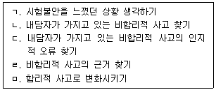 시험불안에 대한 개입방법 중 '합리적으로 생각하기'의 순서로 옳은 것은?