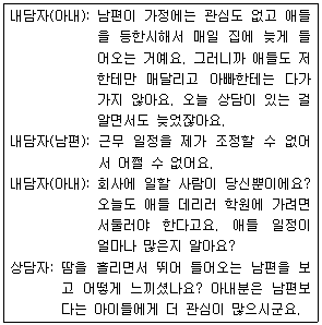 다음 사례에서 상담자가 부부에게 시도하고 있는 구조적 가족상담 기법은?
