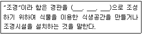 <보기>는 「조경기준」상 조경의 정의에 관한 내용이다. <보기>에서 괄호 안에 들어갈 용어를 바르게 나열한 것은?