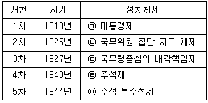 대한민국 임시정부의 개헌 과정이다. ㉠부터 ㉤까지의 내용 중 옳지 않은 것을 모두 고른 것은?
