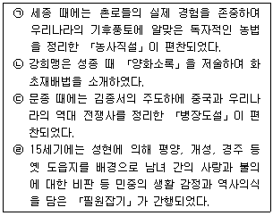 조선시대 문화에 대한 ㉠부터 ㉣까지의 설명 중 옳고 그름의 표시(O, X)가 바르게 된 것은?