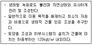 「건축물 녹화 설계기준」에서 규정한 옥상녹화 중 다음 설명에 해당하는 것은?