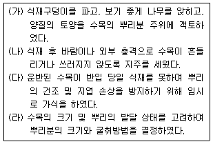 조경수목을 이식하여 식재하는 시공과정을 순서대로 바르게 나열한 것은?