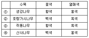 수목-꽃색-열매색을 바르게 연결한 것은?