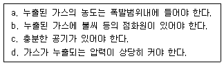 도시가스가 누출되었을 경우 폭발하는 조건으로 모두 맞는 것은?