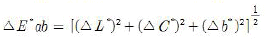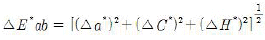 CIELAB 표색계에서 색차식을 나타내는 계산식으로 옳은 것은?
