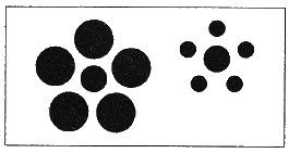 그림에서 큰 원에 둘러싸인 중심의 원과 작은 원에 둘러싸인 중심의 원이 동일한 크기이지만 다르게 보이는 이유는?