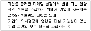 다음은 마케팅정보시스템 중 무엇에 관한 설명인가?