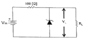다음과 같은 정전압 회로에서 입력전압 Vin이 15[V]∼18[V]의 범위로 변동하는 경우 제너다이오드 전류 ID의 변화는 얼마인가? (단, RL=1[kΩ], VL=10[V]이다.)