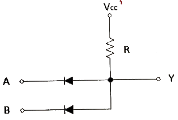 다음 회로에서 VCC=5[V]일 때 출력 전압은? (단, A=5[V], B=0[V], 다이오드의 VT=0[V]이다.)