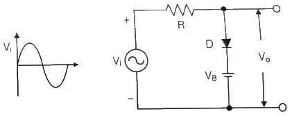 다음 회로에서 Vi>VB일 때, 회로의 출력 파형은 어느 것인가? (단, 다이오드의 VT 값은 무시한다.)