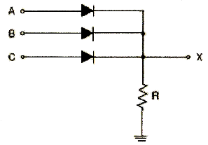 다음 회로에서 A, B, C를 입력, X를 출력이라고 하면 회로는 어떤 논리 게이트인가? (단, 정논리 회로이다.)