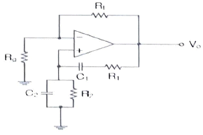 다음은 윈-브리지 발진회로를 나타내었다. 발진주파수를 구하는 식은 어느 것인가? (여기서, R1=R2=R, C2=C1=C이다.)