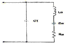 그림과 같은 수정편의 등가회로에서 LO=25[mH], CO=1.6[pF], RO=5[Ω], C1=4[pF]일 때 직렬 공진 주파수는 약 얼마인가? (단, =3.14)