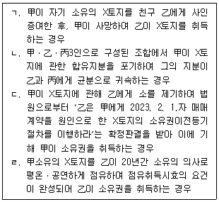 부동산소유권의 변동을 위해 등기를 요하는 것을 모두 고른 것은? (다툼이 있으면 판례에 따름)