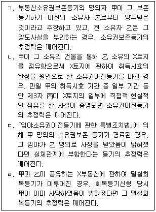 등기의 추정력에 관한 설명으로 옳은 것을 모두 고른 것은? (다툼이 있으면 판례에 따름)