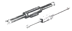 다음 그림과 같이 실린더 튜브 내에 자석이 설치되어 있고 실린더 외부에도 환형의 자석이 설치되어 자력 커플링으로 결속된 환형의 몸체가 실린더 튜브를 따라 이송할 수 있는 실린더는?
