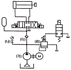 다음 유압 회로도를 구성하는 기기의 명칭이 틀린 것은?