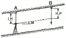 그림과 같이 터널 내의 천장에 측점이 설치되어 있을 때 두 점의 고저차는? (단, I.H=1.20m, H.P=1.82m, 사거리=45m, 연직각 α=15°30′)