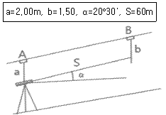 경사진 터널의 고저차를 구하기 위한 관측값이 다음과 같을 때 A, B 두 점간의 고저차는?